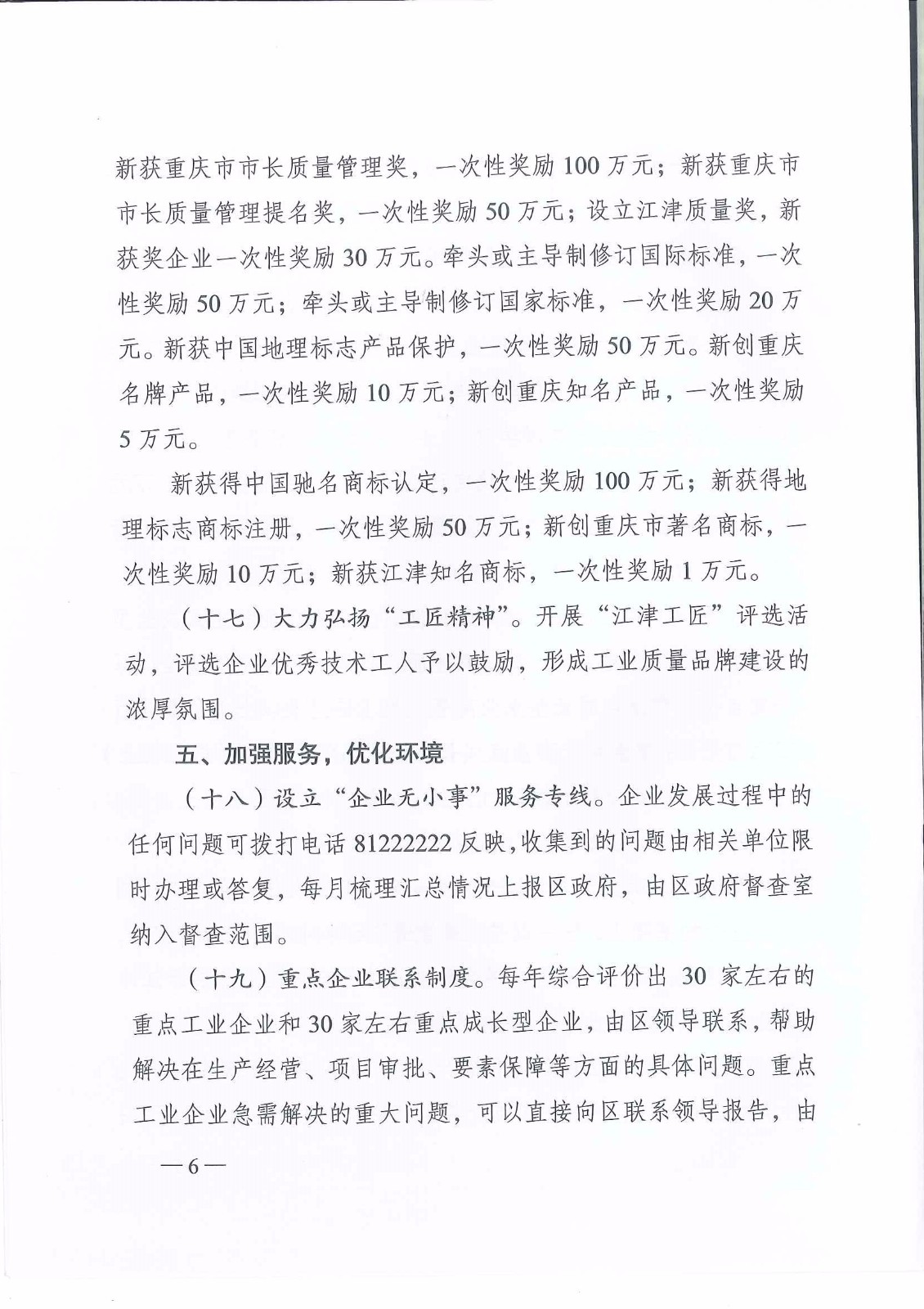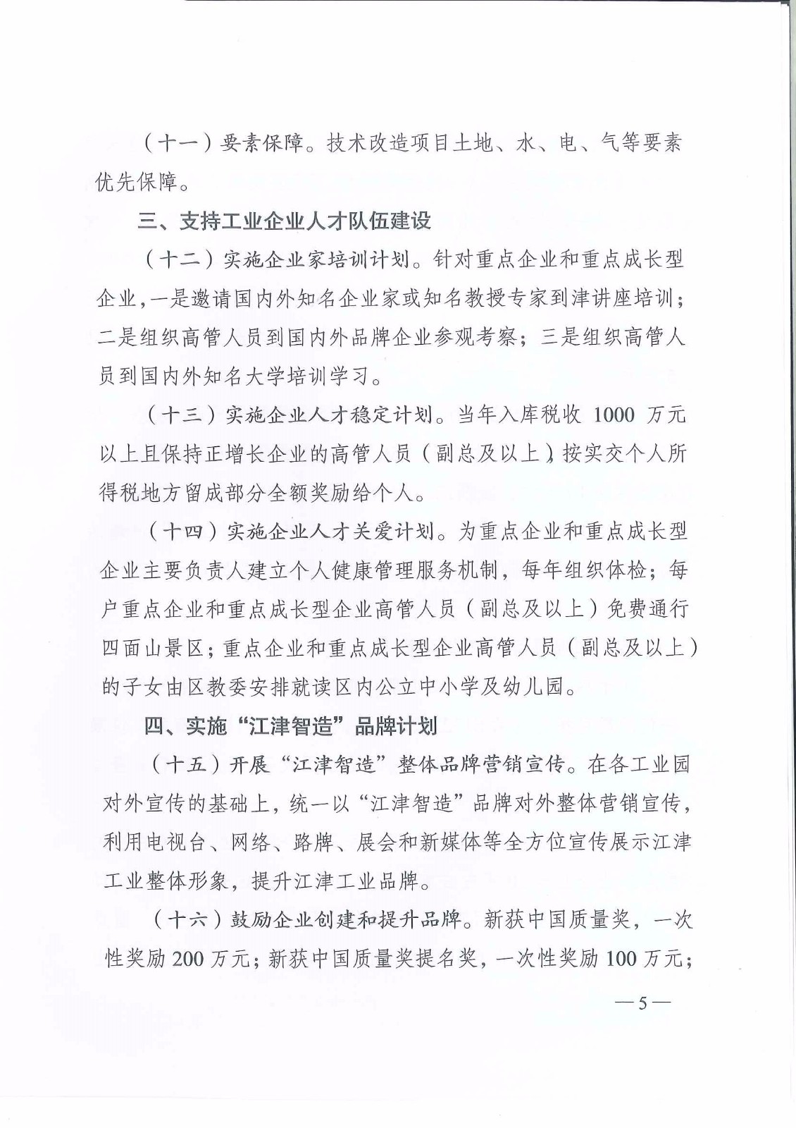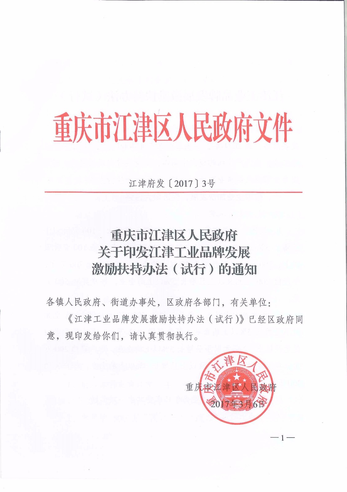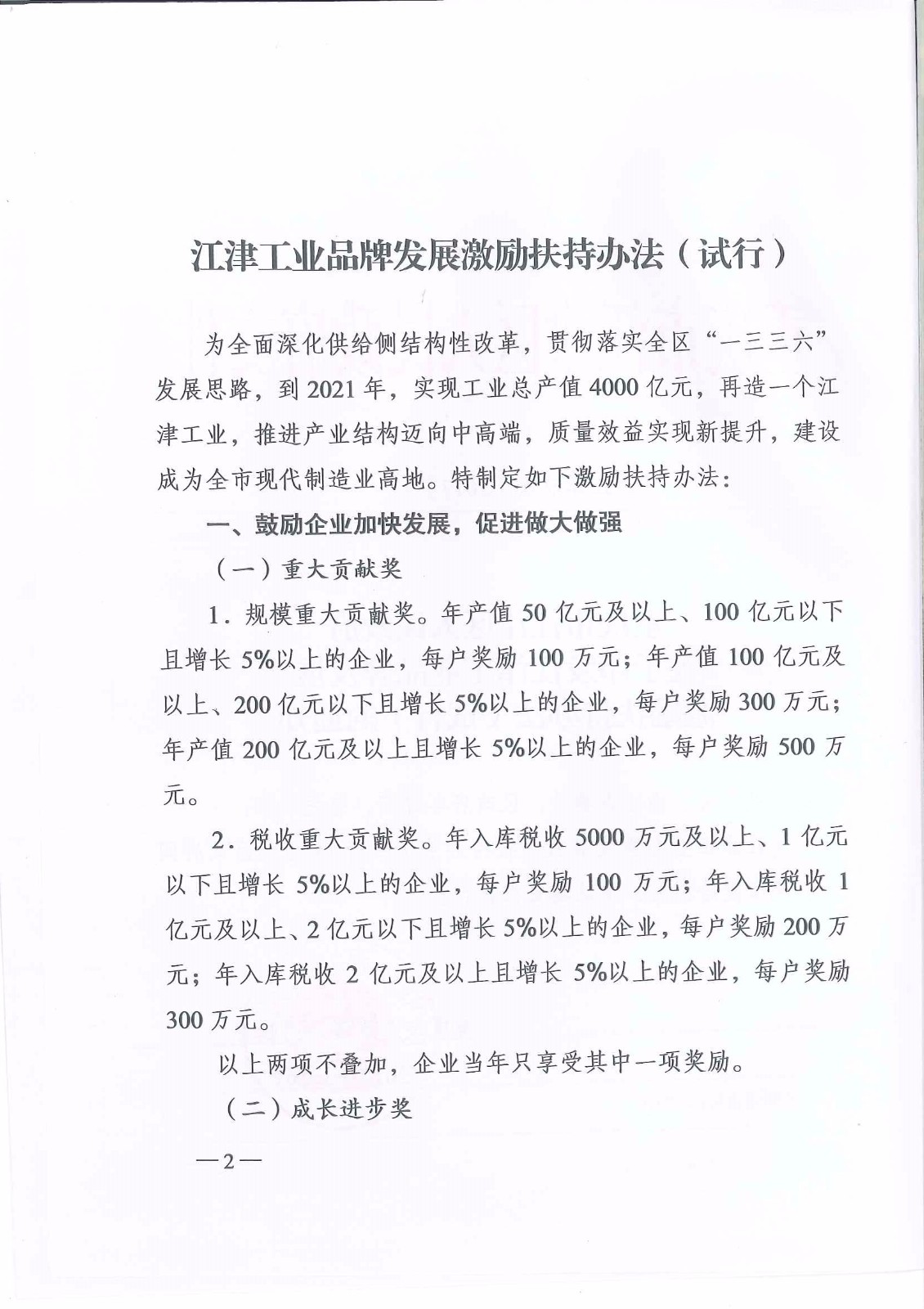 关于印发江津工业品牌发展激励扶持办法(实行)的通知